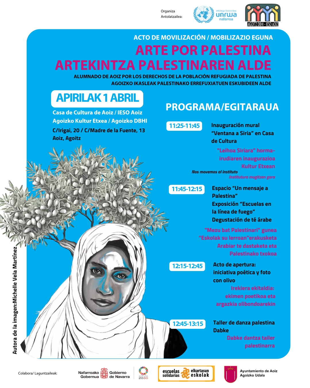 El próximo 1 de abril, la Casa de Cultura de Aoiz se convertirá en un espacio de encuentro, arte y movilización en apoyo a la población refugiada de Palestina. Organizado por UNRWA junto al IESO Aoiz y el Ayto. Aoiz, desde el programa Escuelas Solidarias, este evento contará con actividades creativas, muestras culturales y momentos de encuentro y reflexión para visibilizar el compromiso del municipio por los derechos humanos de esta población.