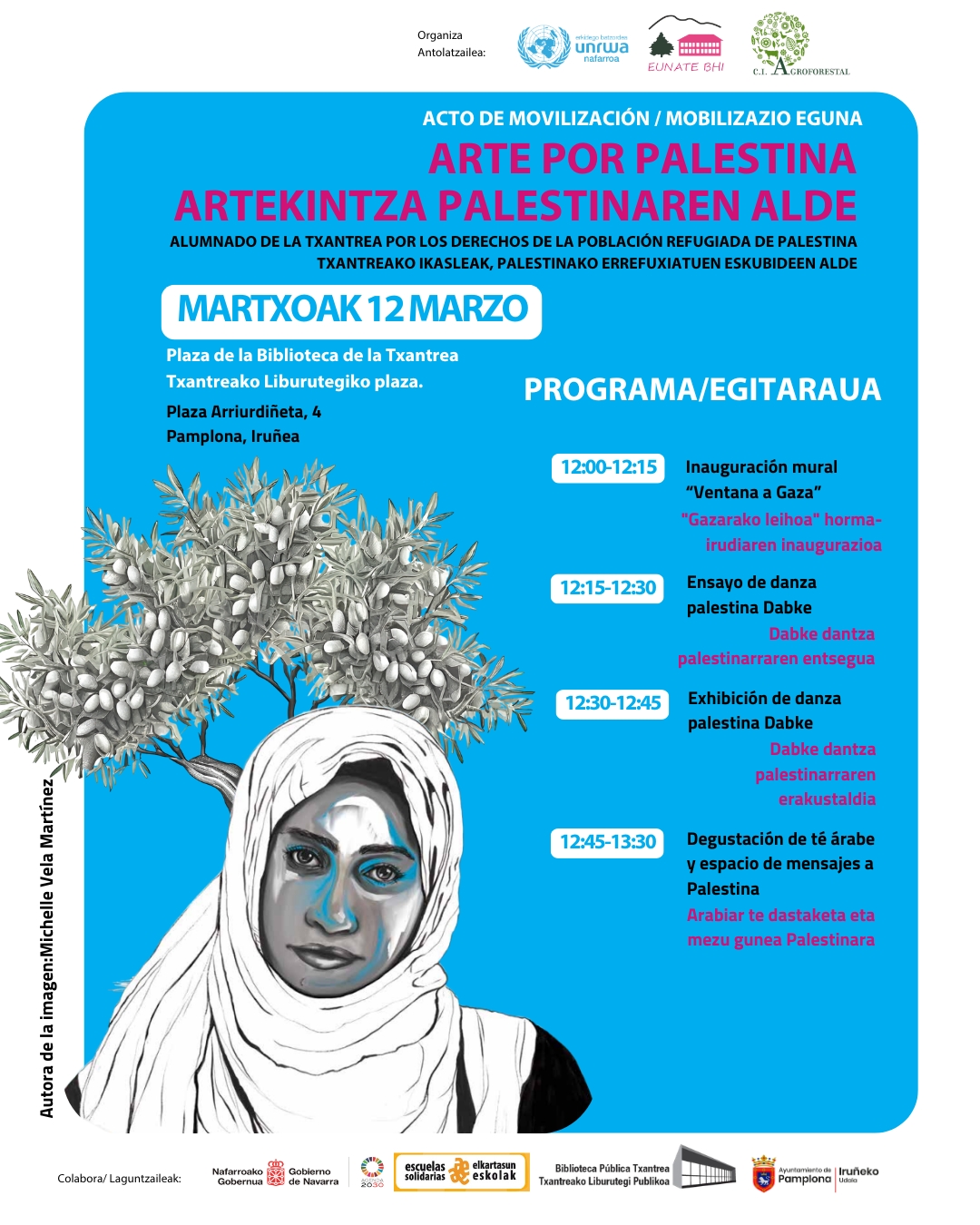 El próximo 12 de marzo, la Plaza de la Biblioteca de la Txantrea se convertirá en un espacio de encuentro, arte y movilización en apoyo a la población refugiada palestina. Organizado por UNRWA junto al IES Eunate BHI y el CI Agroforestal, desde el programa Escuelas Solidarias y con el apoyo de varios colectivos del barrio, este evento contará con actividades creativas, muestras culturales y momentos de encuentro y reflexión para visibilizar el compromiso del barrio por los derechos humanos de esta población.