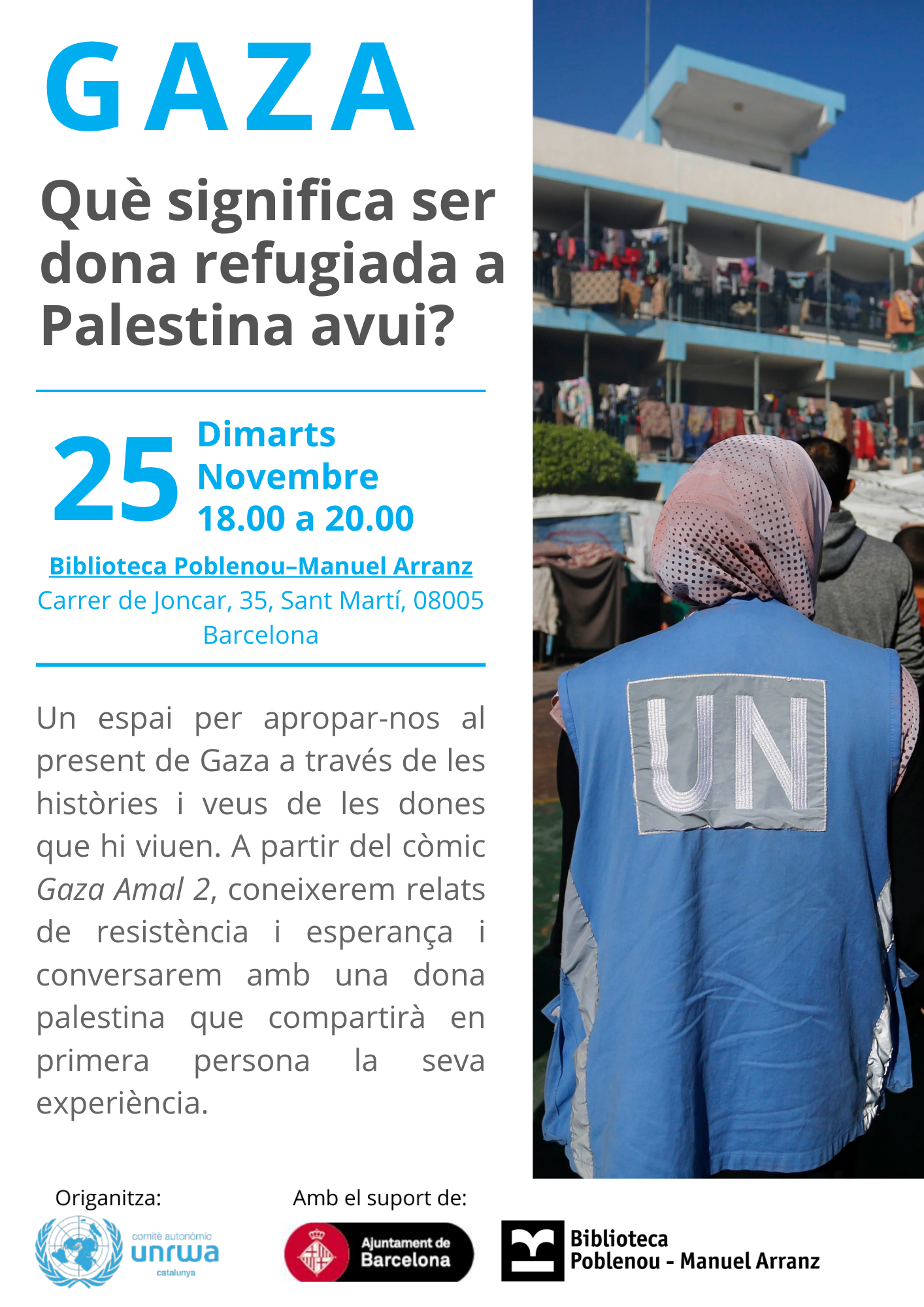 Desde UNRWA Catalunya te invitamos a un encuentro muy especial en la Biblioteca Poblenou – Manuel Arranz de Barcelona, donde conoceremos de cerca las vidas, desafíos y esperanzas de las mujeres palestinas en la franja de Gaza.