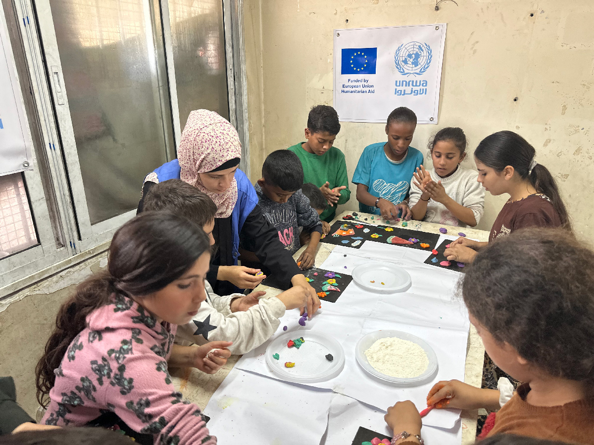 En toda la Franja, los profesionales de la salud mental de UNRWA desarrollan programas y actividades de entretenimiento. El objetivo es que los menores puedan conectar con actividades propias de la infancia, como jugar, bailar, pintar o dibujar, que mejoran su salud mental y les devuelven la esperanza.