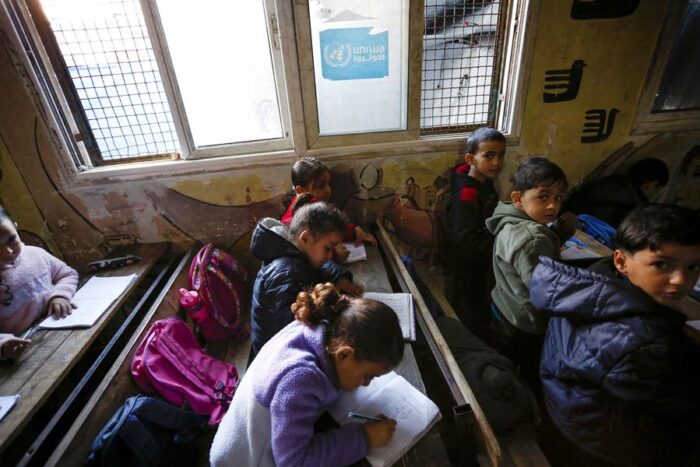 Pese a la destrucción de la infraestructura, UNRWA mantiene su apoyo educativo mediante espacios temporales de aprendizaje presencial y herramientas digitales.